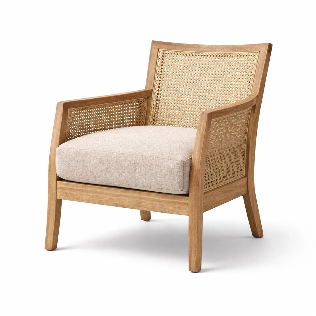 Rahmenmaterial: Teakholz mit Rattangeflecht.